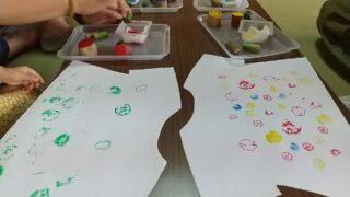 トナカイの角は子どもたちの両手のスタンプです。