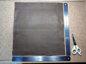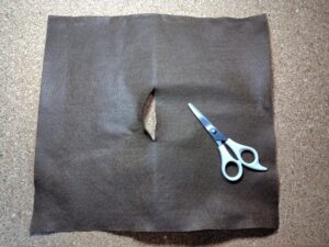 茶色のフェルトを30cm四方くらいに切り、中央にさつまいもが通るくらいの切込みを入れます。
