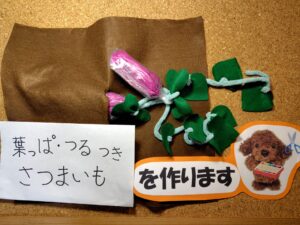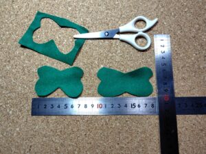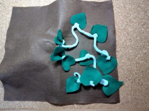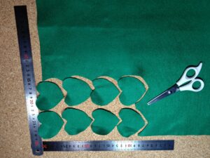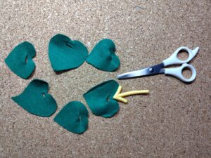緑色のフェルトをさつまいもの葉っぱのハート型に切り、