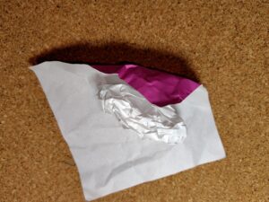 A4のコピー用紙などの紙を丸めて団子状にし、色紙で包みます。