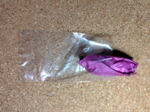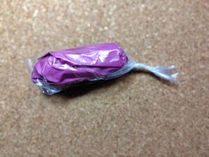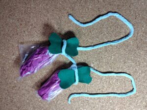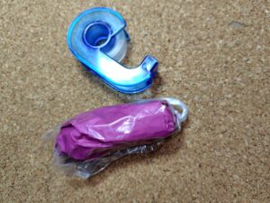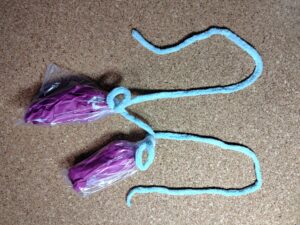 1mくらいに切ったひもをビニール袋のねじって作ったリンクの中に